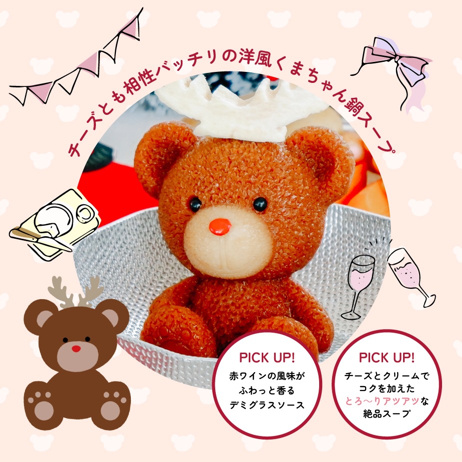 【クリスマス限定】<デミグラストナカイくまちゃんのお鍋&チーズフォンデュ>ホムパセット【送料無料】