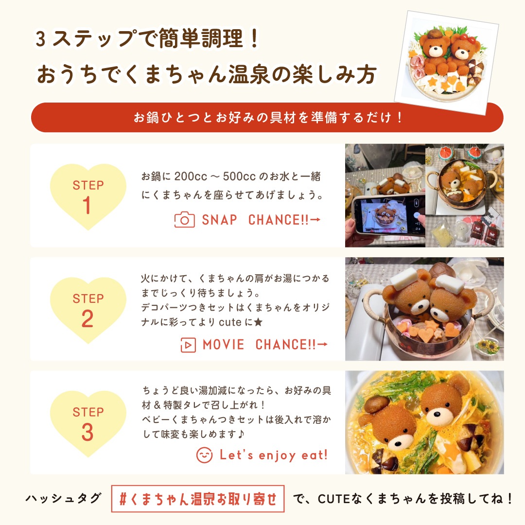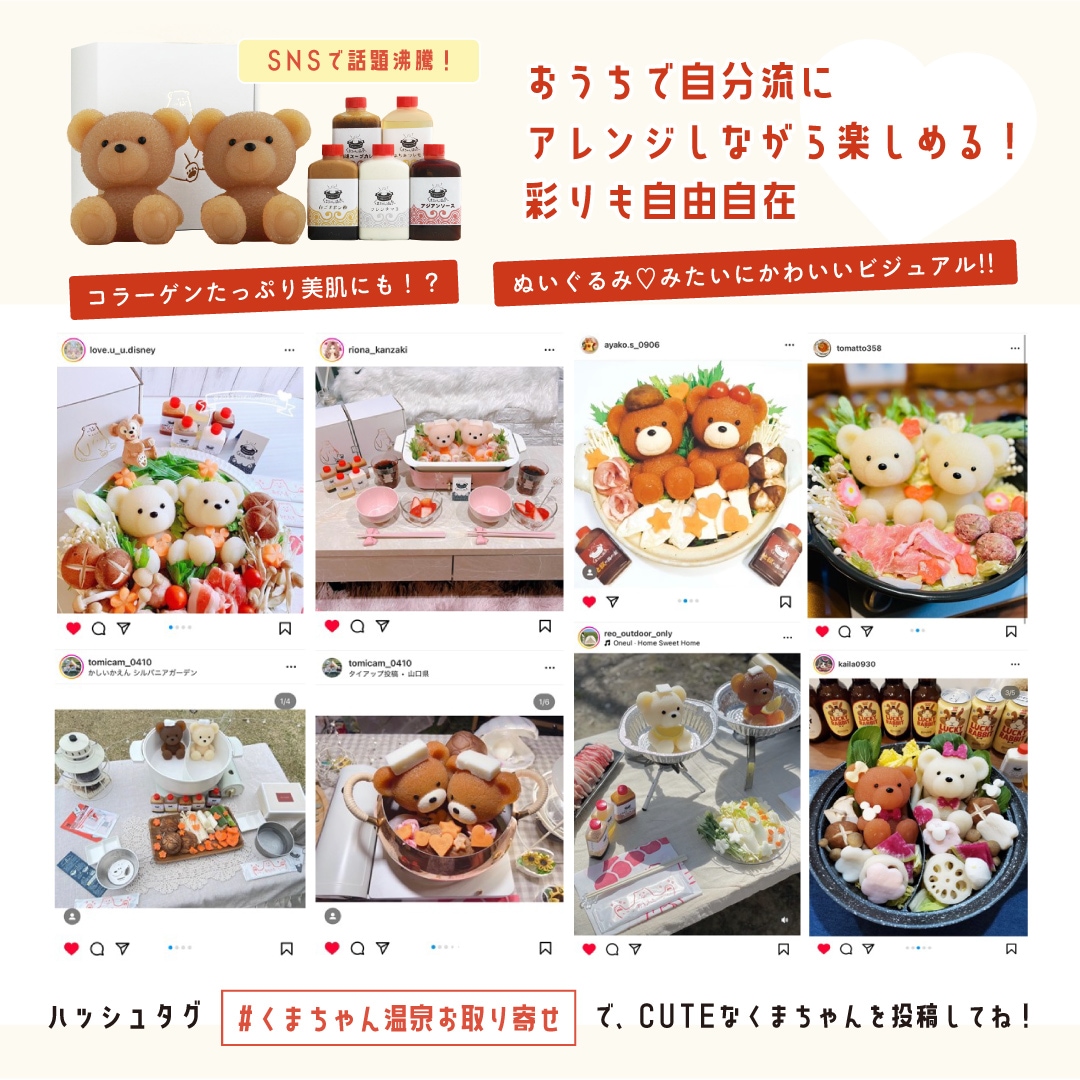くまちゃんのアレンジは無限大!可愛く彩って、写真や動画を撮影するのもこのお鍋の楽しみの一つ!