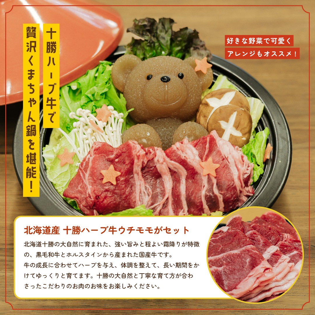【2月限定】国産 十勝ハーブ牛付き バレンタイン限定ギフトセット<茶くまちゃんor白くまちゃん>【送料無料】【くまちゃん鍋】
