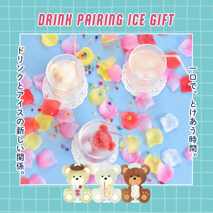 ドリンクとペアリングしてほしい3種類のくまちゃん型フレーバーアイスを、かわいいオリジナルギフトボックスに入れてお届けします。