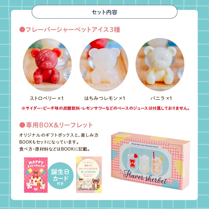 - ※フレーバーシャーベット3種以外の飾りなどは付属しておりません。