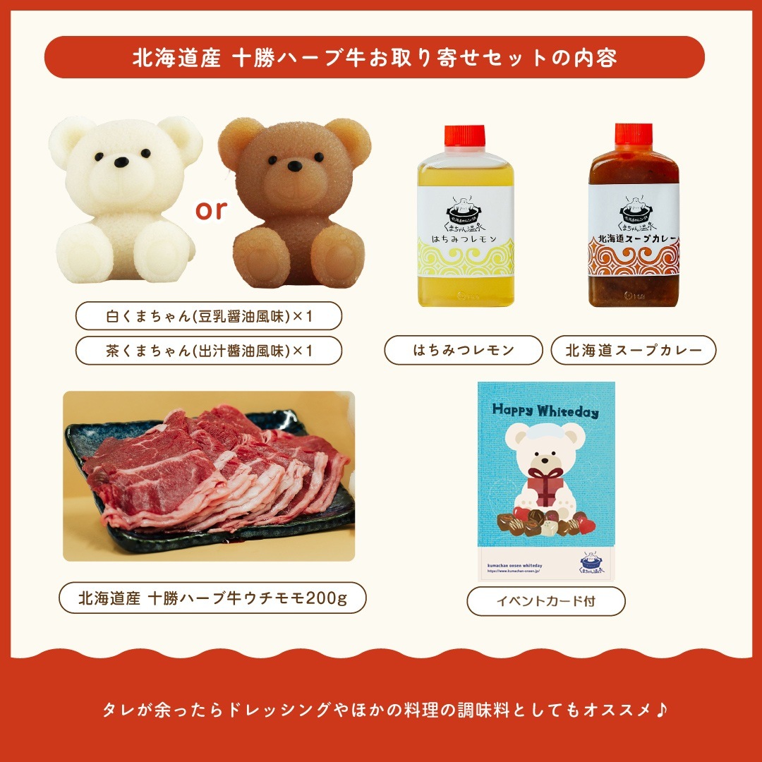 【期間限定】国産 十勝ハーブ牛付き ホワイトデーギフトセット<茶くまちゃんor白くまちゃん>【送料無料】【くまちゃん鍋】